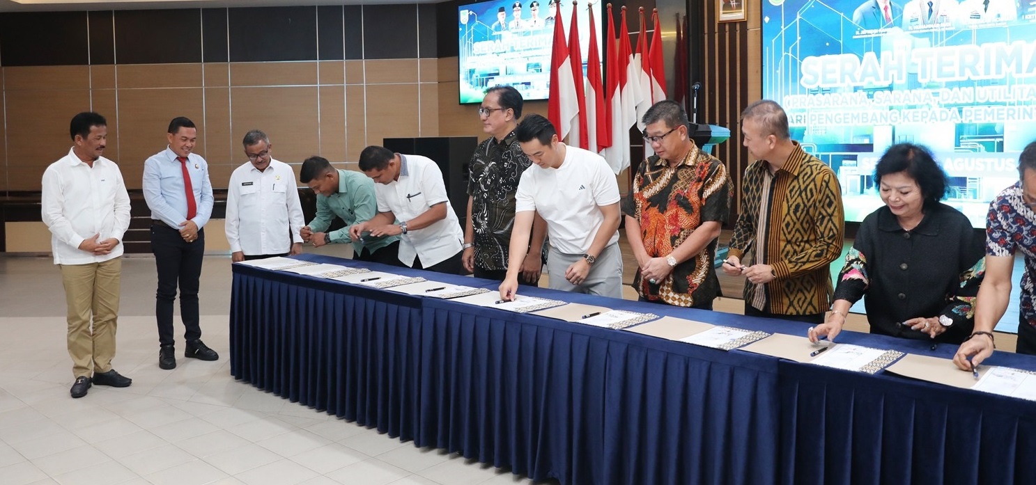 CENTRALNEWS.ID, BATAM – Wali Kota Batam, Muhammad Rudi, menyaksikan penandatanganan akte notaris terkait penyerahan lahan PSU dari pengembang atau developer ke Pemerintah Kota Batam.