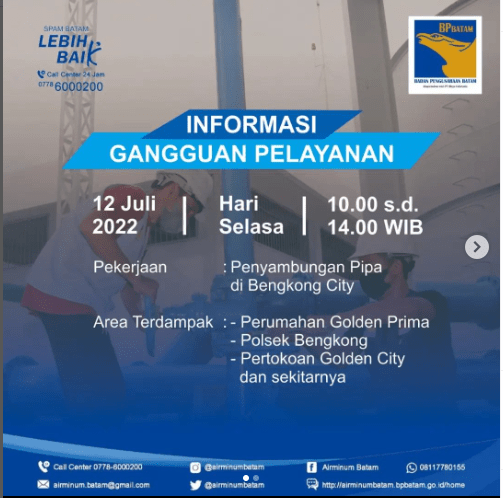 Gunakan saluran resmi kepelangganan SPAM Batam untuk penanganan keluhan serta informasi kepelangganan melalui :