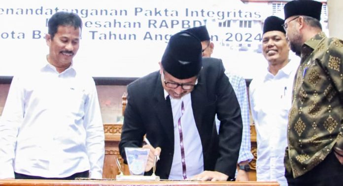 CENTRALNEWS.ID, BATAM – Paruh kedua tahun 2023, Dewan Perwakilan Rakyat Daerah (DPRD) Kota Batam bersama Pemerintah (Pemko) Kota Batam melakukan Penandatanganan Pakta Integritas Pengesahan Rencana Anggaran Pendapatan dan Belanja Daerah (RAPBD) Kota Batam Tahun 2024, Kamis (20/7/2023).
