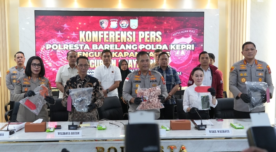 Bersama Wakil Kepala BP Batam/Wakil Walikota Batam, Li Claudia Chandra, apresiasi dan terima kasih itu disampaikan Amsakar Achmad saat menghadiri konferensi pers, yang dilaksanakan di Mapolresta Barelang, Kamis (2/4/2026).