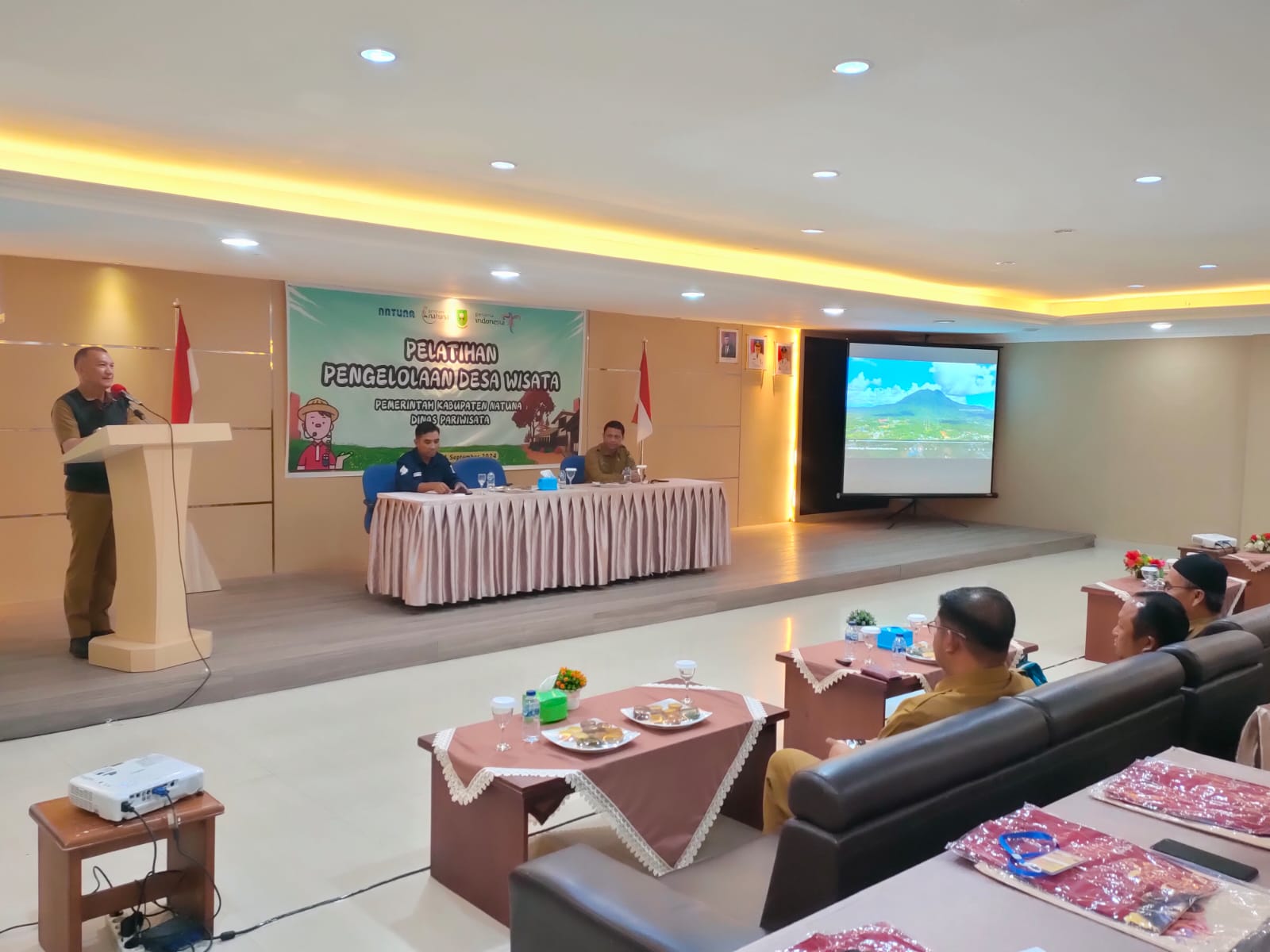 Pelatihan ini diselenggarakan oleh Dinas Pariwisata dan Ekonomi Kreatif (Disparekraf) Natuna, dengan peserta para pengelola desa wisata di Kabupaten Natuna.