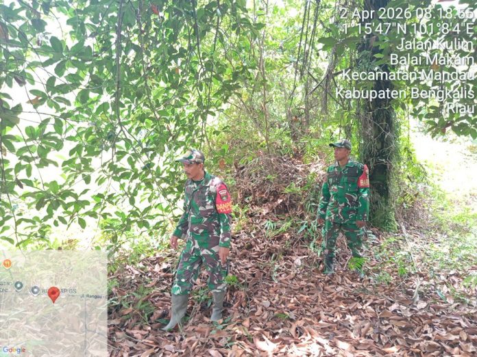 CENTRALNEWS.ID, DURI – Sebagai upaya mencegah terjadinya kebakaran hutan dan lahan (Karhutla) Prajurit Koramil 03 Mandau Pelda Suprapto dan Kopda Yusup Andri laksanakan instruksi Danramil 03 Mandau Kapten Czi. Suratmin untuk berpatroli di jalan lintas Duri – Dumai desa Balai Makam, kecamatan Bathin Solapan, Kamis (2/4).