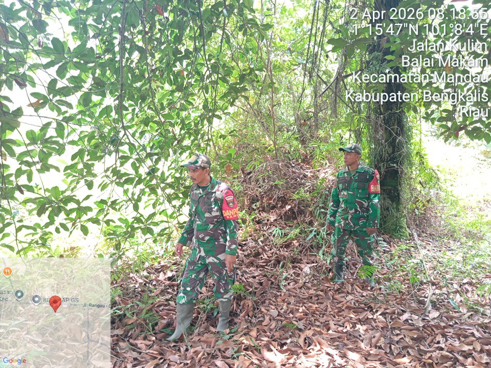 “Laksanakan petunjuk Danramil 03 Mandau, kita kembali gencarkan patroli pencegahan Karhutla di Balai Makam. Wilayah rawan api kita pantau agar potensi kebakaran bisa dicegah dengan baik. Dalam patroli kali ini tidak ditemukan adanya titik panas,” kata Pelda Suprapto, wakili Danramil 03 Mandau.