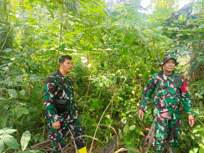 CENTRALNEWS.ID, DURI – Sebagai upaya mencegah terjadinya kebakaran hutan dan lahan (Karhutla) Prajurit Koramil 03 Mandau Sertu F. Sihotang dan Kopda Alif laksanakan instruksi Danramil 03 Mandau Kapten Czi. Suratmin untuk berpatroli di kilometer 10 jalan Rangau Desa Petani, kecamatan Bathin Solapan, Senin (27/4).
