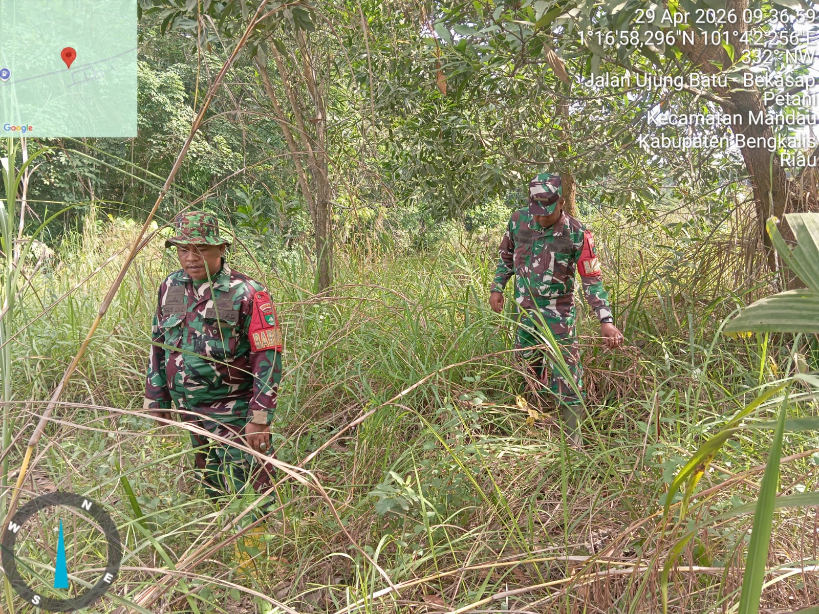 CENTRALNEWS.ID, DURI – Sebagai upaya mencegah terjadinya kebakaran hutan dan lahan (Karhutla) Prajurit Koramil 03 Mandau Serma Agusliadi dan Serda Riza Ramdani laksanakan instruksi Danramil 03 Mandau Kapten Czi. Suratmin untuk berpatroli di jalan Bekasap Desa Petani, kecamatan Bathin Solapan, Rabu (29/4).