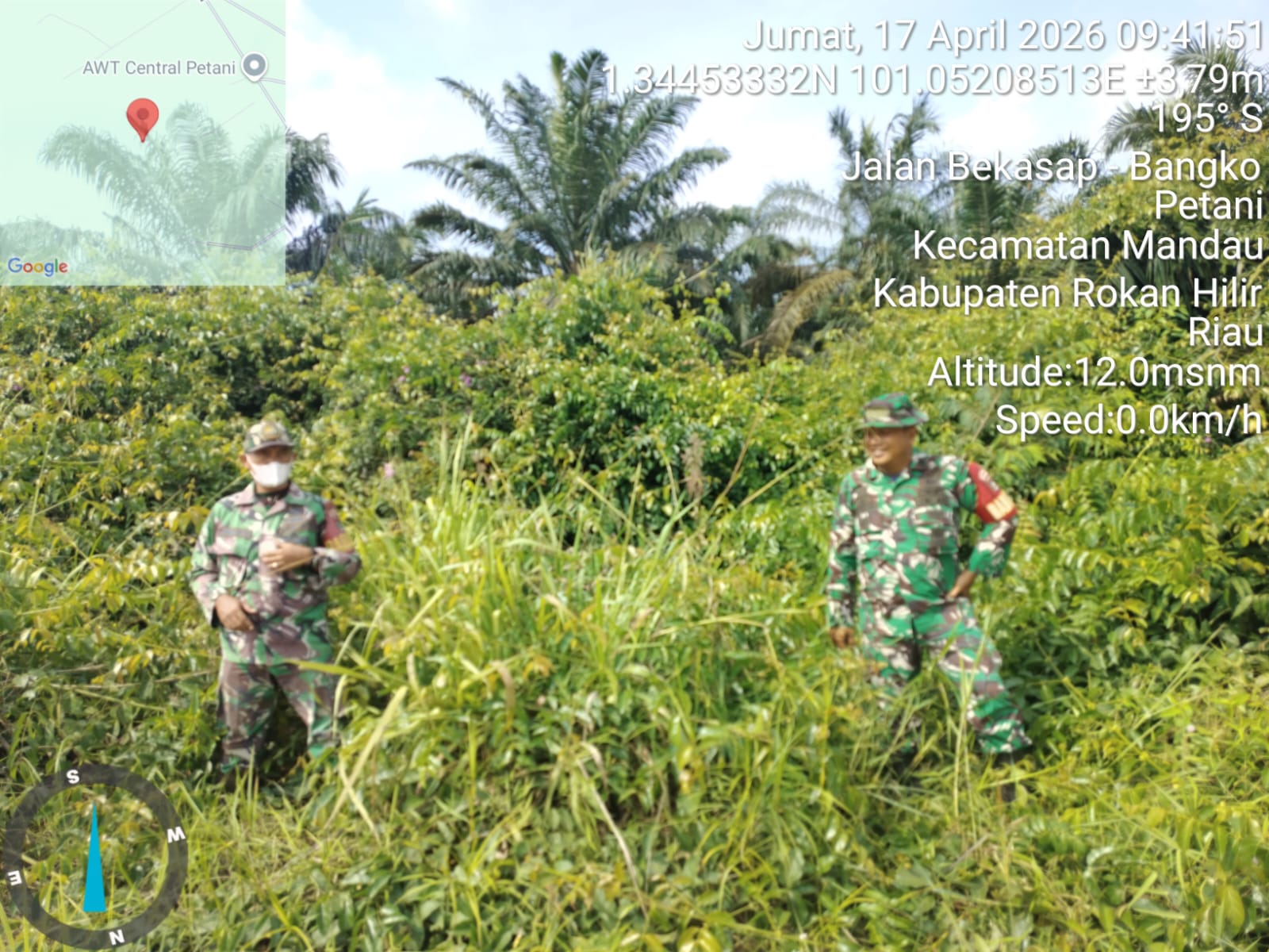 CENTRALNEWS.ID, DURI – Sebagai upaya mencegah terjadinya kebakaran hutan dan lahan (Karhutla) Prajurit Koramil 03 Mandau Serma Agus WP dan Serda D. Simanjuntak laksanakan instruksi Danramil 03 Mandau Kapten Czi. Suratmin untuk berpatroli di jalan Sakura – Duri, kelurahan Duri Barat, kecamatan Mandau, Jumat (17/4).