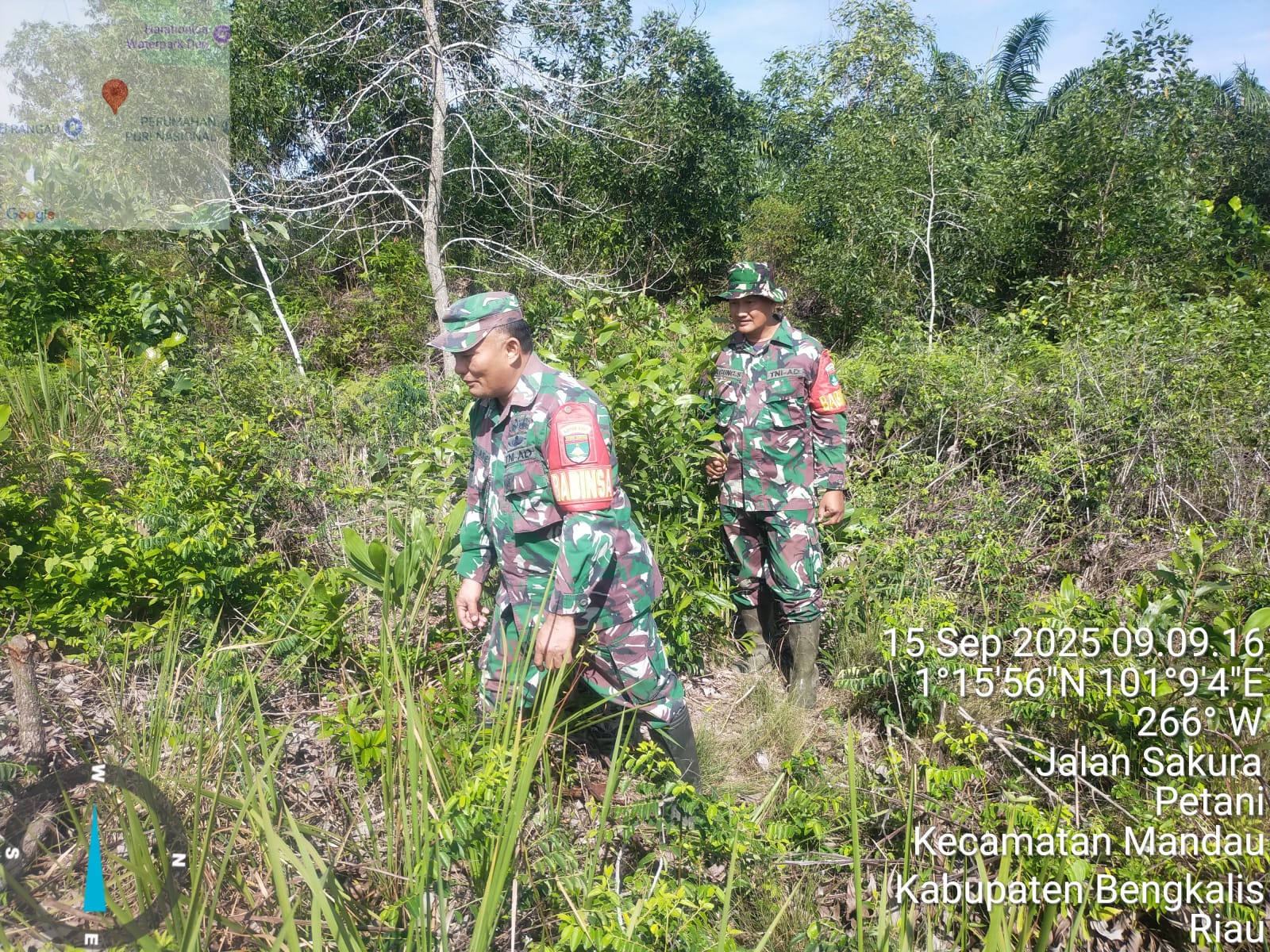 CENTRALNEWS.ID, DURI – Sebagai upaya mencegah terjadinya kebakaran hutan dan lahan (Karhutla) Prajurit Koramil 03 Mandau Serka TR Lase, Serka Agung Saputro dan Koptu Muchsin Khan laksanakan instruksi Danramil 03 Mandau Kapten Czi. Suratmin untuk berpatroli di jalan Desa Petani, kecamatan Bathin Solapan, Senin (15/9).