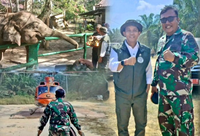 CENTRALNEWS.ID, DURI – Komandan Koramil 03/Mandau diwakili Babinsa Serma Agus Waskito Prabowo, Koptu Bambang dan Kopda Yusup Andri kawal kunjungan kerja Menteri Kehutanan Republik Indonesia, Raja Juli Antoni beserta jajaran ke Pusat Latihan Gajah (PLG) Sebanga, desa Muara Basung, kecamatan Pinggir, Bengkalis, Riau, Sabtu (29/11).