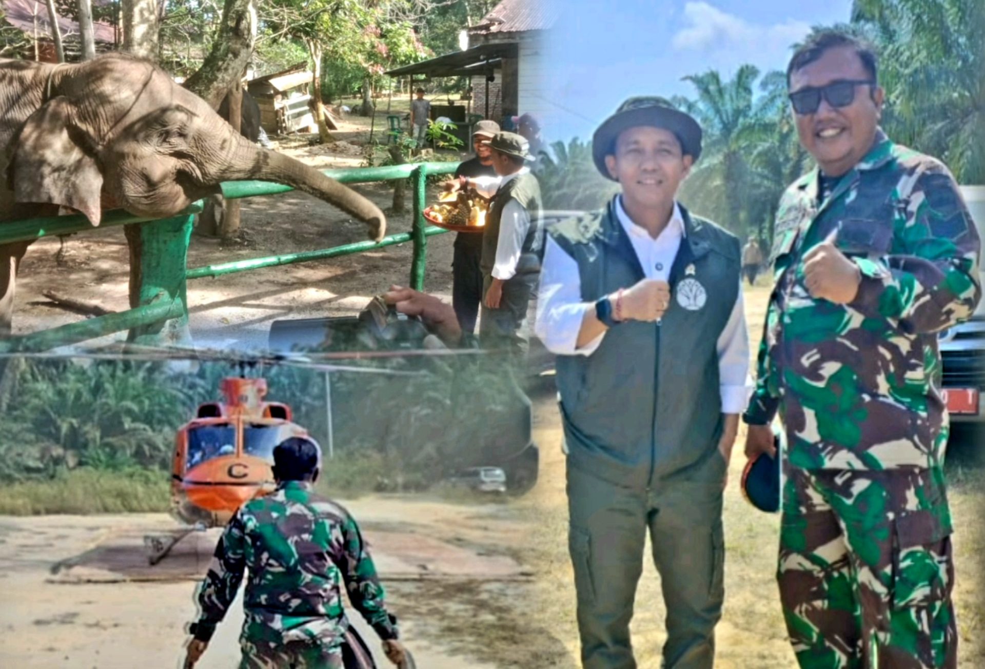 Menggunakan armada Helikopter, Menhut tiba di kawasan konservasi dan pelatihan gajah sumatera tersebut dengan pendaratan yang sempurna berkat panduan Babinsa. Perjalanan pun berlanjut hingga tiba di PLG Sebanga guna memantau kehidupan kawanan gajah jinak yang berada pada pusat pelatihan tersebut.