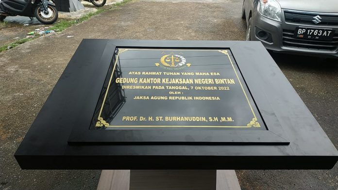 CENTRAL BATAM. CO. ID, BINTAN -Jaksa Agung ST Burhanuddin batal melakukan penandatangan Prasasti Gedung baru Kejari Bintan yang berada di Bintan Buyu.