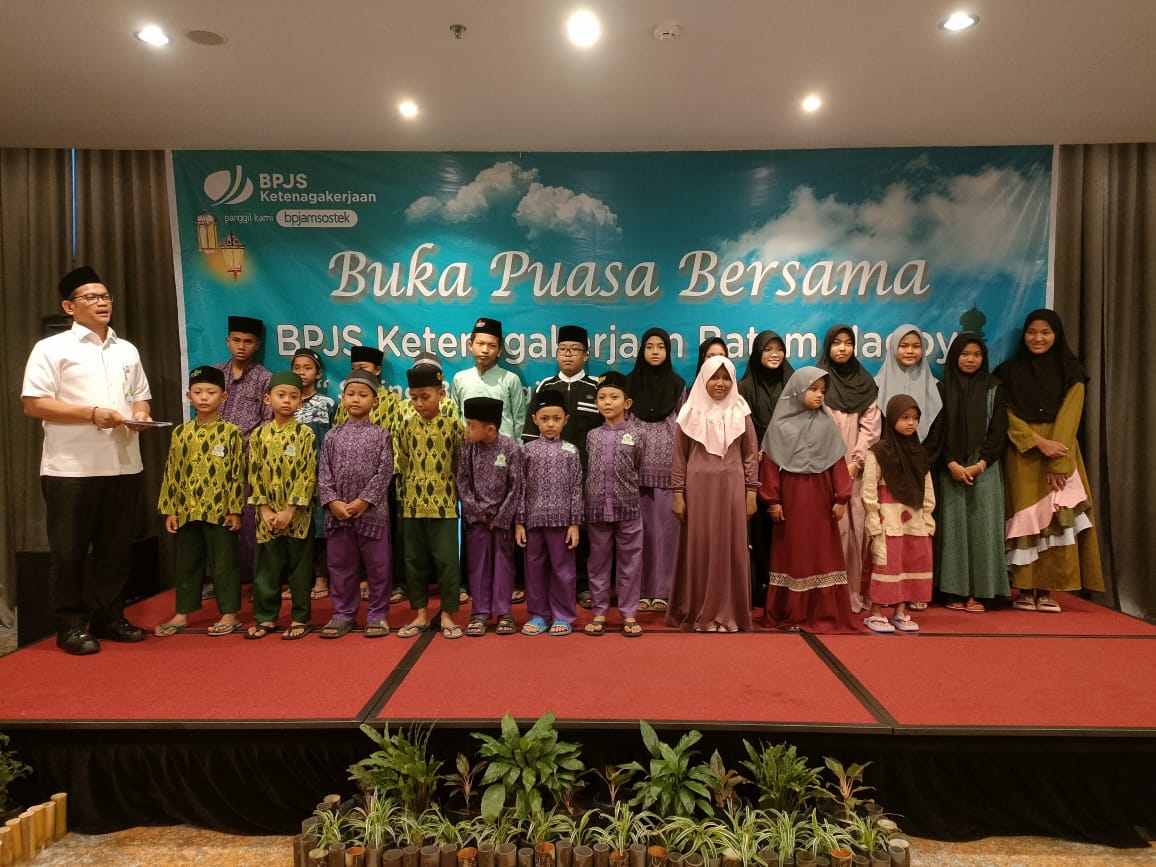 Sebanyak 34 anak Yatim Piatu dari Yayasan Arrohmah Assifiyah mendapat santunan dan bingkisan lebaran dari BPJS Ketenagakerjaan Batam Nagoya, 24 orang diantaranya hadir dalam acara buka puasa bersama yang diselenggarakan BPJS Ketenagakerjaan Batam Nagoya.