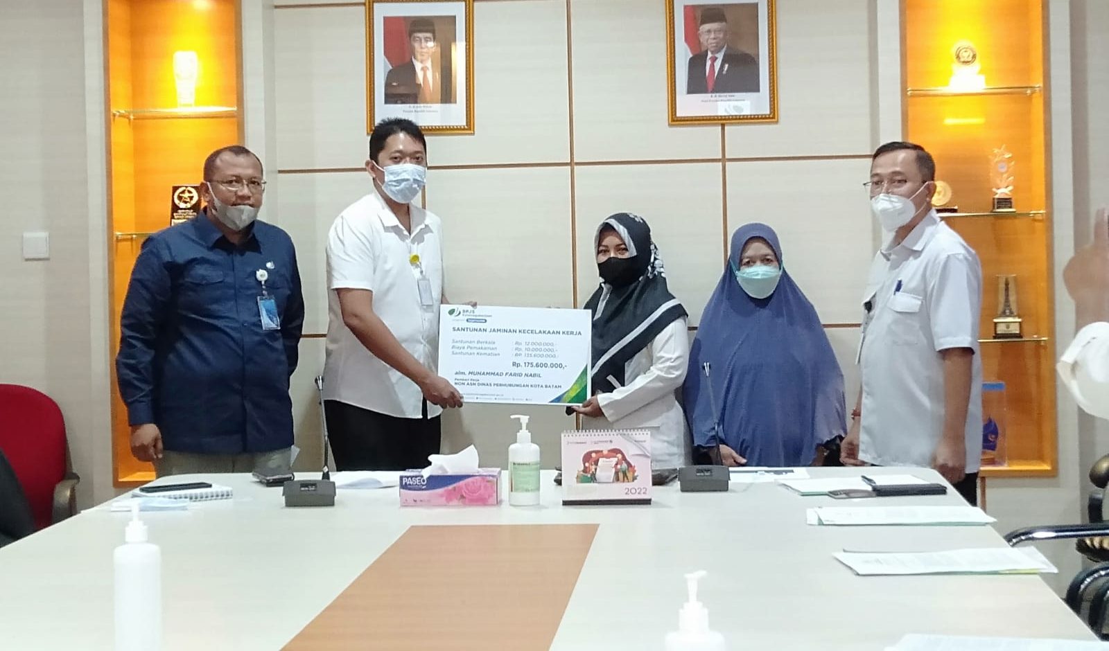 CENTRALNEWS.ID, BATAM– Badan Penyelenggara Jaminan Sosial Ketenagakerjaan (BPJAMSOSTEK) Kantor Cabang Batam Nagoya memberikan santunan kematian akibat kecelakaan kerja kepada ahli waris tenaga kerja Non ASN Dinas Perhubungan Kota Batam sebesar Rp 175.600.000.