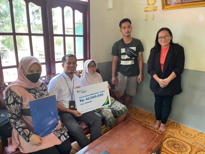 CENTRALNEWS.ID, BATAM – Badan Penyelenggara Jaminan Sosial Ketenagakerjaan (BPJAMSOSTEK) Kantor Cabang Batam Nagoya memberikan santunan kematian seorang nelayan bernama Almarhum Suhaimi.