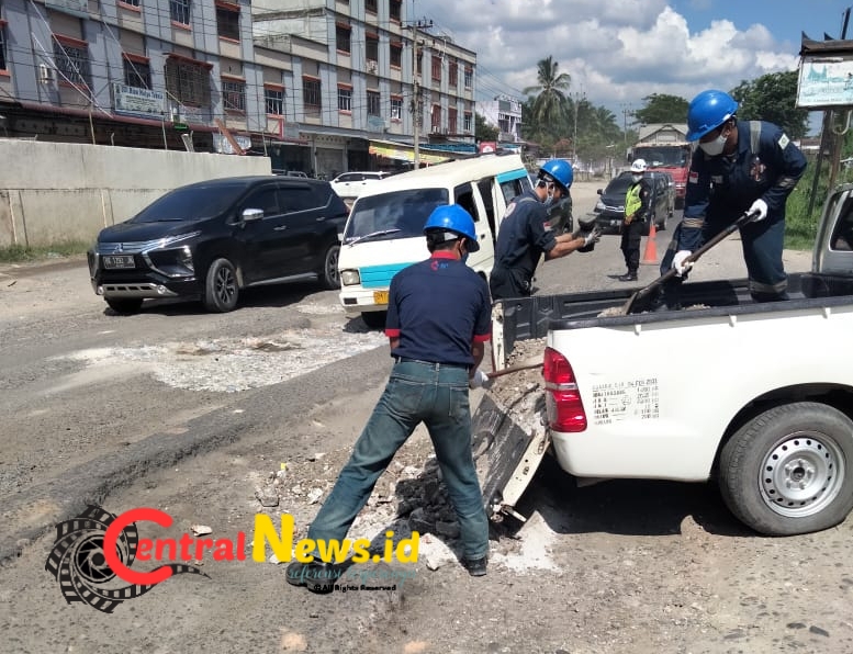 Merespon hal itu, Irwan selaku Manager PT EJP langsung menginstruksikan pekerjanya untuk mengangkut bebatuan dan meratakan lubang-lubang di ruas jalan lintas Sumatera itu.