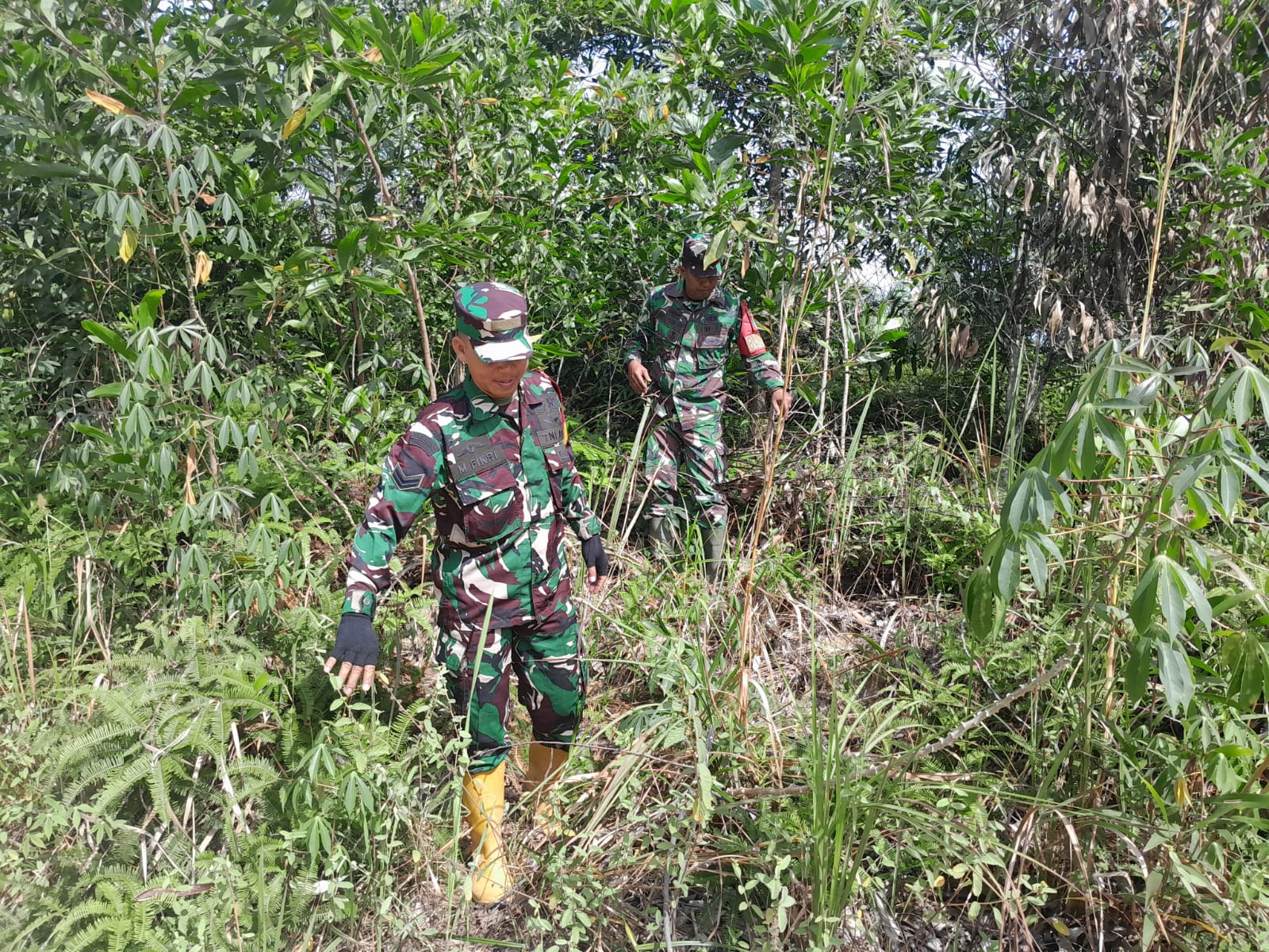 CENTRALNEWS.ID, DURI – Sebagai upaya mencegah terjadinya kebakaran hutan dan lahan (Karhutla) Prajurit Koramil 03 Mandau Serma Fauzi, Sertu Fikri dan Serda Riza Ramdani laksanakan instruksi Danramil 03 Mandau Kapten Czi. Suratmin untuk berpatroli di kilometer 14 jalan Rangau desa Petani, kecamatan Bathin Solapan, Rabu (5/11).