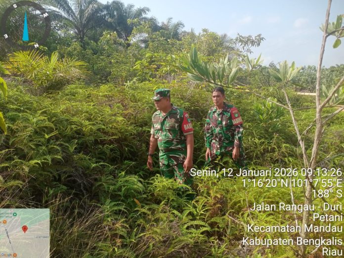 CENTRALNEWS.ID, DURI – Sebagai upaya mencegah terjadinya kebakaran hutan dan lahan (Karhutla) Prajurit Koramil 03 Mandau Sertu Sutiman dan Kopda Ade Kurniawan laksanakan instruksi Danramil 03 Mandau Kapten Czi. Suratmin untuk berpatroli di jalan Rangau – Duri, kelurahan Pematang Pudu, kecamatan Mandau, Senin (12/1).