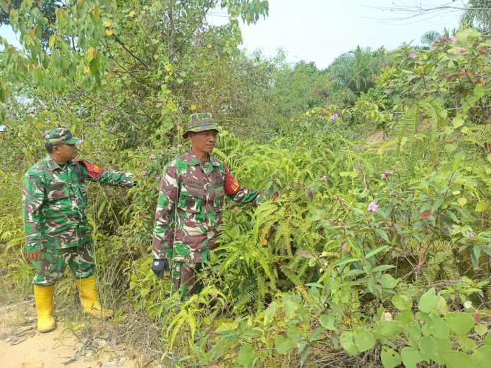 CENTRALNEWS.ID, DURI – Sebagai upaya mencegah terjadinya kebakaran hutan dan lahan (Karhutla) Prajurit Koramil 03 Mandau Peltu Sigit NW, Sertu Handoko dan Praka Amser Manullang laksanakan instruksi Danramil 03 Mandau Kapten Czi. Suratmin untuk berpatroli di kelurahan Pematang Pudu, kecamatan Mandau, Sabtu (24/1).