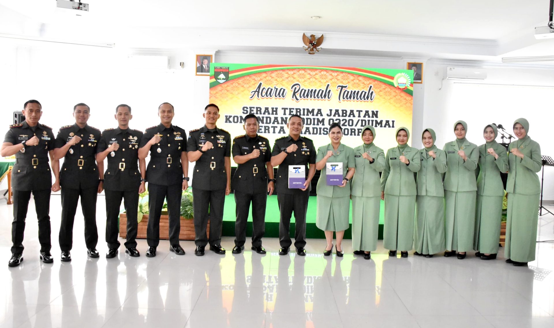 CENTRALNEWS.ID, DURI – Komandan Kodim 0303/Bengkalis Letkol. Inf. Haris Nur Priatno didanpingi Ketua Persit KCK Cab. LII Dim Bengkalis Ny. Vita Haris hadiri acara serah terima jabatan Dandim 0320/Dumai dari Letkol. Inf. Ronald Manurung, kepada Letkol. Arm. Herman Santoso yang bertempat di Aula Korem 031/Wira Bima, Selasa (4/11).