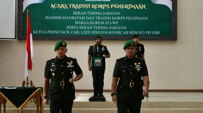 Komandan Resor Militer (Danrem) 033/Wira Pratama (WP), Brigadir Jenderal (Brigjen) Tentara Nasional Indonesia (TNI) Yudi Yulistyanto, secara resmi menyerahterimakan jabatan Dandim 0316/Batam dari Letkol KAV Sigit Dharma Wiryawan ke Letkol Inf Galih Bramantyo.