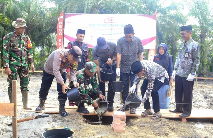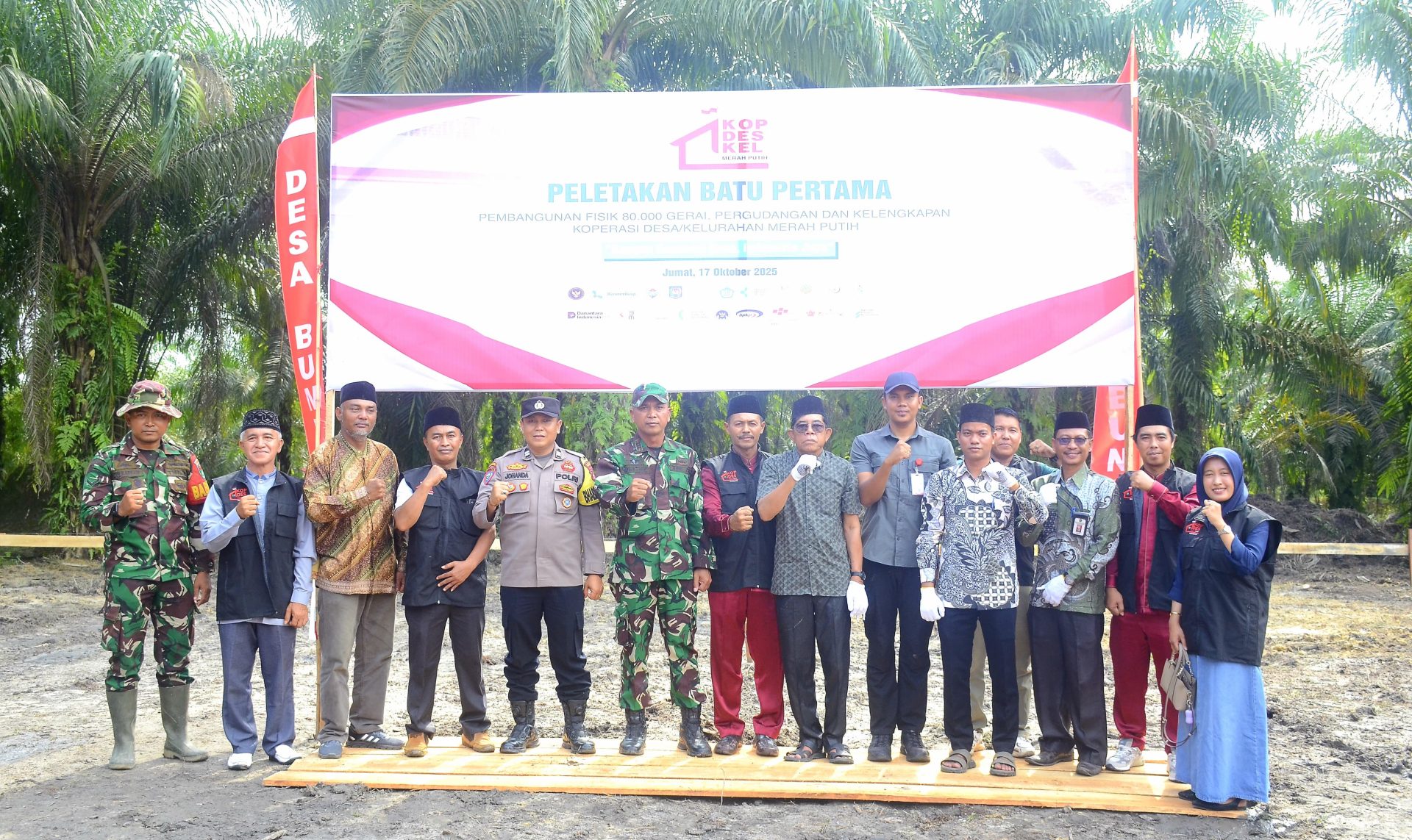 Acara tersebut diakhiri dengan peletakan batu pertama sebagai tanda dimulainya pembangunan fisik koperasi desa Merah Putih di desa Bumbung, kecamatan Bathin Solapan. (Bres)