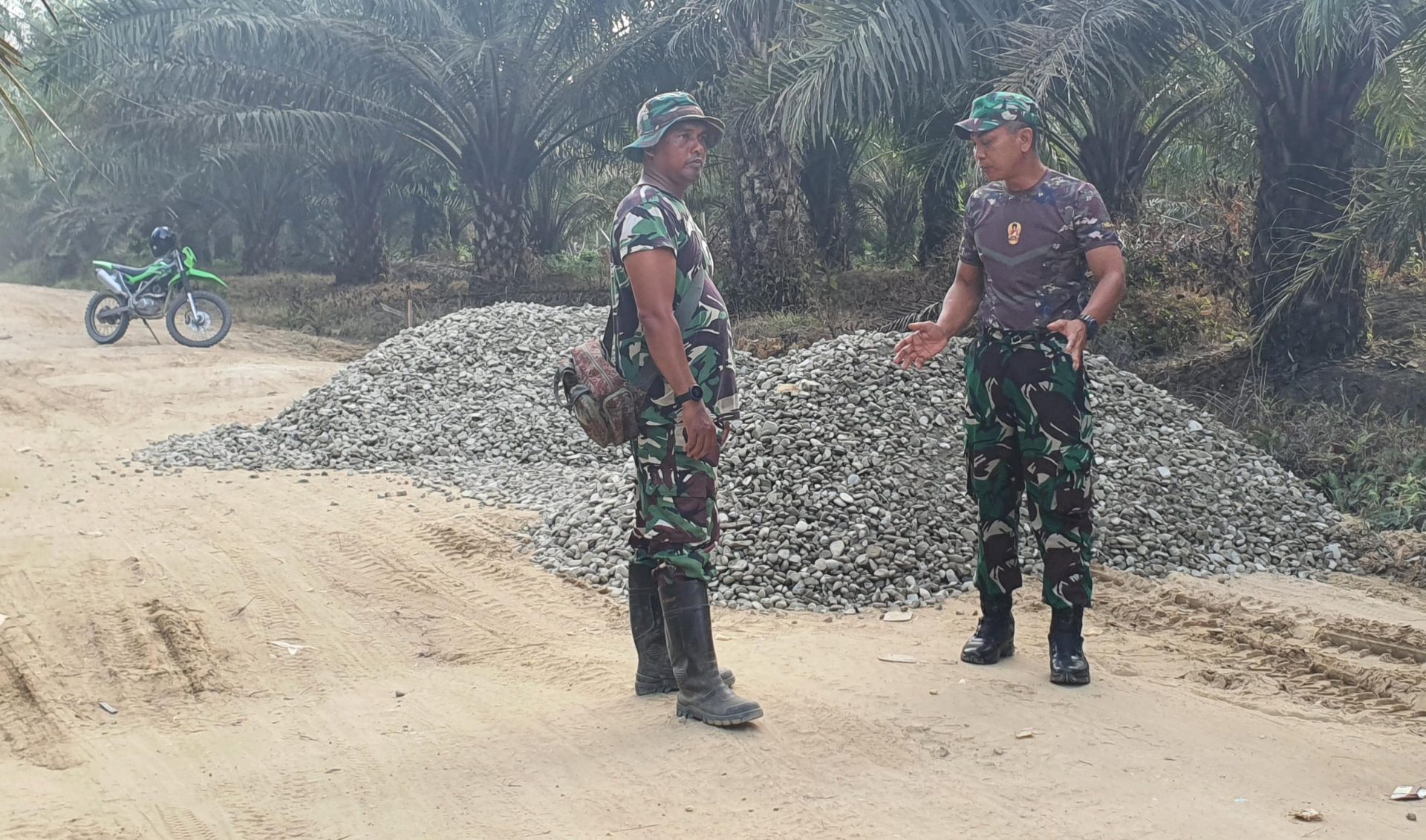 Danramil 03 Mandau Tinjau Pelansiran Material Base jalan Desa Harapan Baru – Bathin Betuah