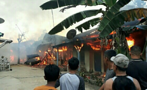 Kobaran api tampak melahap lebih dari tiga rumah semi permanen yang berderetan, tiupan angin cukup kencang saat itu turut mempercepat rambatan api ke sisi kiri dan kanan.