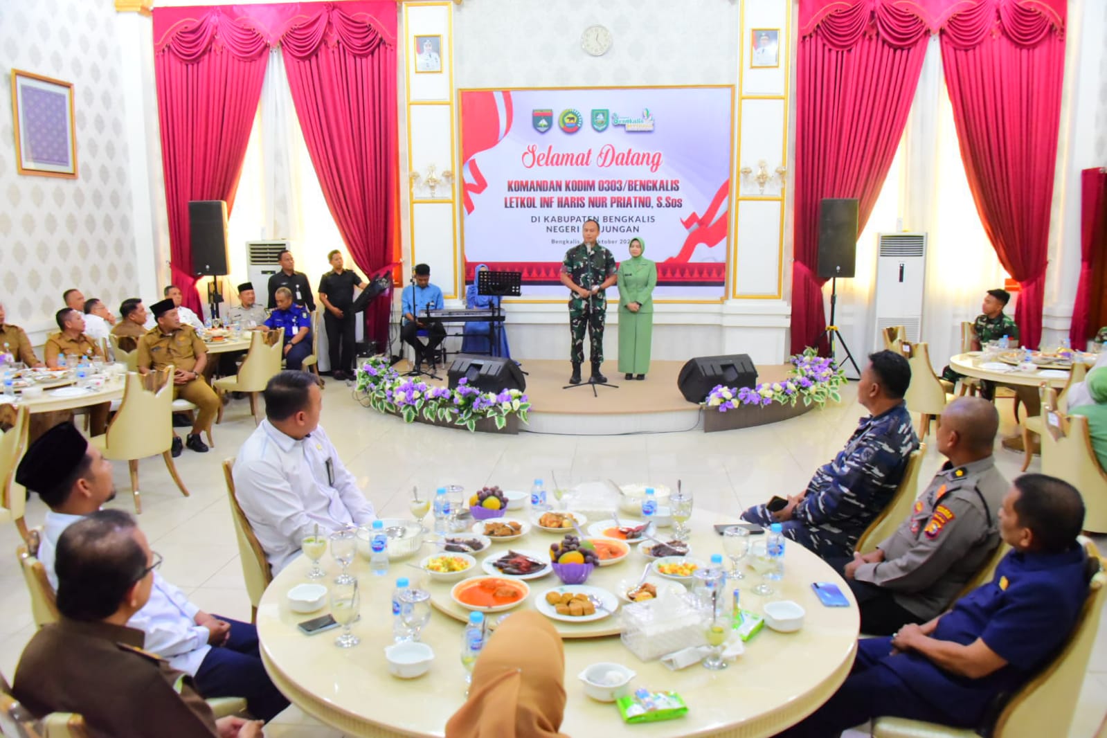 Usai tradisi penyambutan di markas komando, Dandim bersama isteri tercinta dan seluruh jajaran kemudian tajak silahturahmi dengan Bupati Bengkalis dan perangkat Forkopimda lainnya. Suasana silahturahmi bersama Bupati kian hangat, berbaur dengan canda tawa serta komitmen bersama dalam mewujudkan kabupaten Bengkalis Bermarwah, Maju dan Sejahtera.