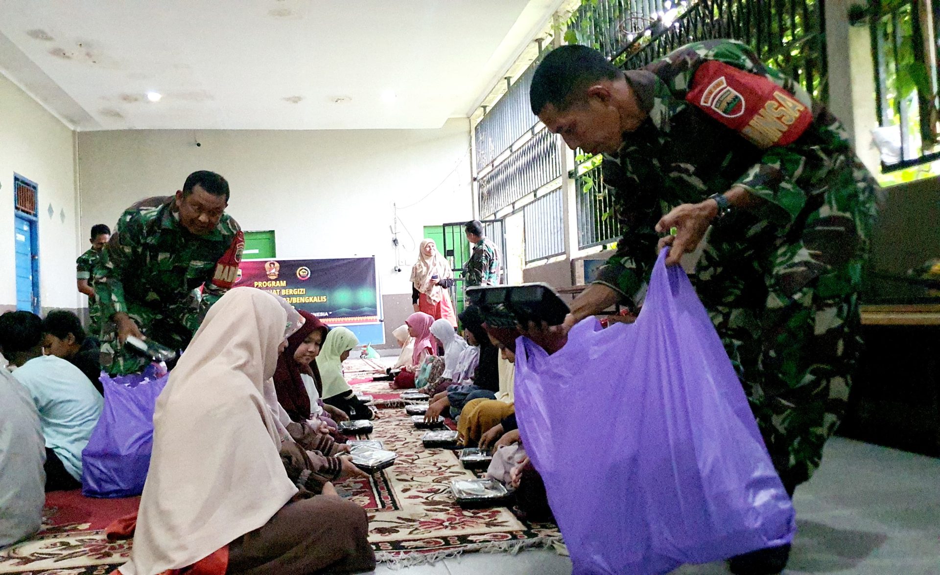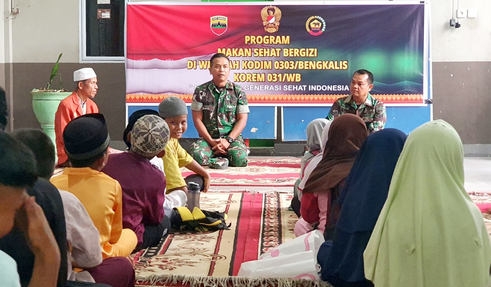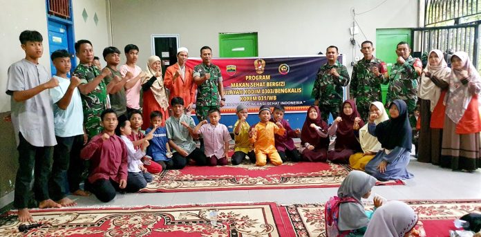 CENTRALNEWS.ID, DURI – Dukung program kerja Presiden RI, Prabowo Subianto dalam rangka memastikan seluruh generasi penerus bangsa mendapatkan kualitas hidup layak melalui pasokan makanan sehat dan bergizi, Komandan Kodim 0303/Bengkalis Letkol. Arh. Irvan Nurdin diwakili Danramil 03/Mandau tajak kegiatan makan bergizi di Pondok Pesantren (Rumah Yatim) Ibadurrahman, kelurahan Balairaja, kecamatan Pinggir – Duri, Bengkalis, Riau, Rabu siang (21/5).