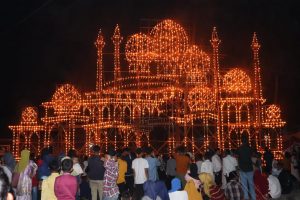 Dandim, Kapolrea Bengkalis AKBP Indra Wijatmiko dan Kasmarni tampak ikut serta menyalakan satu persatu lampu yang telah dirakit pada menara kayu. Rakitan yang kemudian dihiasi nyala lampu colok sukses memukau, sebab bentuk atau relief yang ditampilkan bak serupa Masjid dengan dimensional yang apik.