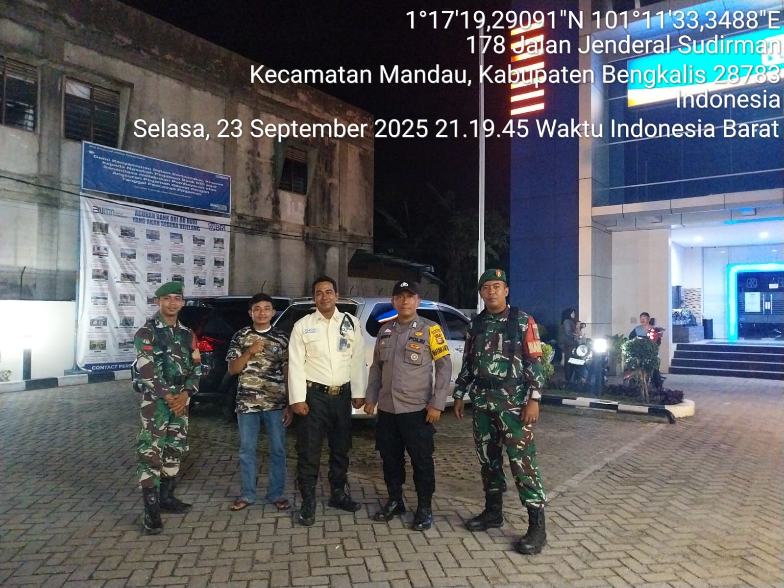 Danramil 03 Mandau, Kapten Czi. Suratmin dalam aksinya kerahkan Babinsa Serda Riza dan Pratu Daniel berbaur bersama personel Polsek dan berpatroli ke berbagai titik keramaian hingga lokasi rawan tindak kejahatan.