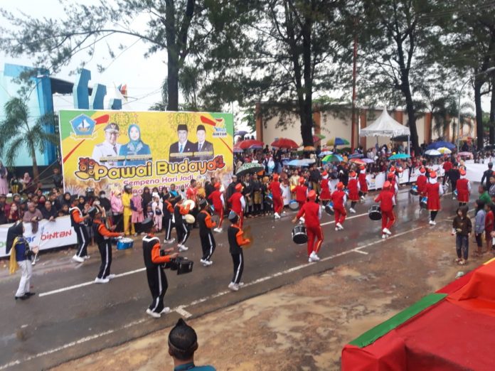CENTRAL BATAM. CO. ID, BINTAN– Meskipun hujan deras, tidak membuat niat Pemerintah Kabupaten Bintan bersama warga ciut merayakan hari ulah tahun Bintan ke 74.