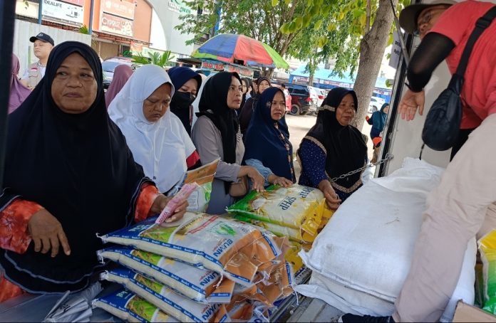 CENTRALNEWS.ID, BATAM – Para ibu-ibu langsung memadati lapak pedagang di Operasi Pasar Murah di depan Mori Kopi, Kecamatan Sekupang, Kota Batam, Kamis (19/10/2023).