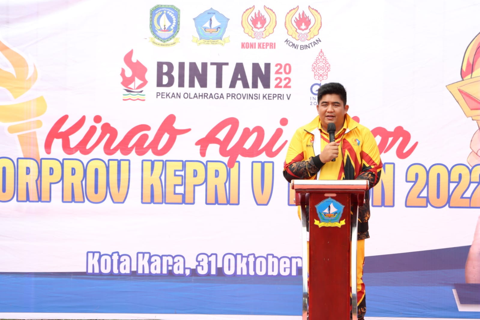 CENTRALNEWS.ID, BINTAN –Hari ini (31/10), pesta pekan olahraga provinsi (Porprov) Kepri di Kabupaten Bintan mulai terasa. Hal ini ditandai saat Pemerintah Kabupaten (Pemkab) Bintan sebagai tuan rumah Porprov Kepri ke V memulai kirab obor di Lapangan Bintan Bekapur pagi tadi.