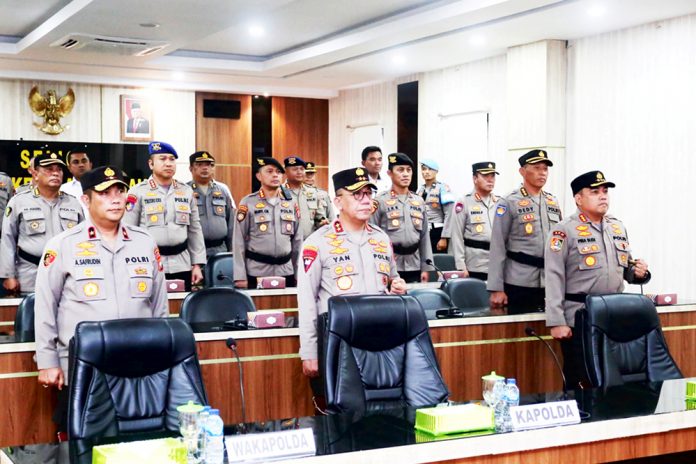 Kapolda Kepri Irjen Pol. Drs. Yan Fitri Halimansyah, M.H., mengikuti upacara Pemulihan Nilai-nilai Tribrata di ruang Vicon Polda Kepri, Rabu (19/6/2024) siang