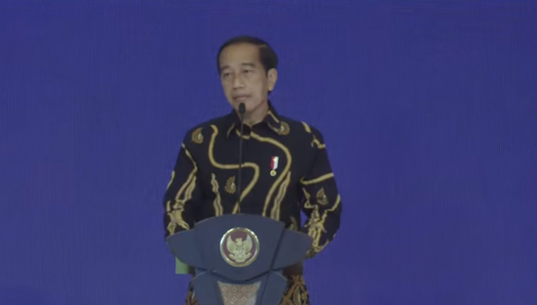 “Jangan tepuk tangan dulu,” pinta Jokowi kepada para pejabat negara yang hadir di Ballroom Hotel Grand Hyatt Nusa Dua Bali, Jumat (25/3/2022).