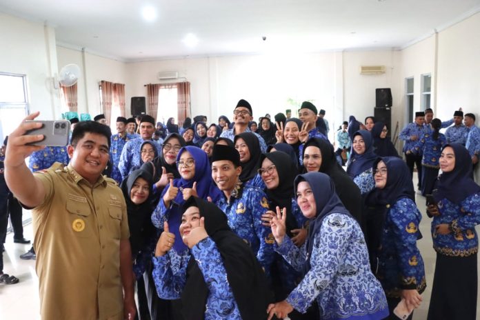 Dihadapan para para pahlawan tanpa tanda jasa itu, Roby memberikan contoh kepada para guru agar selalu mendekatkan diri dengan para murid. Misalnya, saat ia dengan santai berselfie ria dengan puluhan tenaga didik yang baru saja ia lantik.