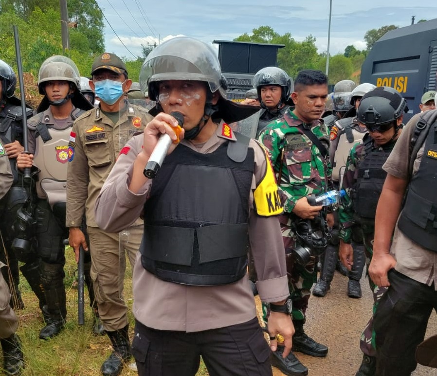 Berada paling depan, Kapolres meminta kepada warga yang menghalangi kerja petugas untuk membubarkan diri.