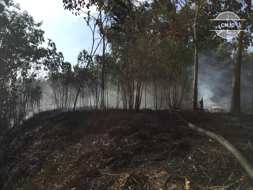 Kejadian masih di wilayah yang sama, namun kebakaran lahan karet berjarak sekitar 300 meter dari lokasi terbakarnya rumah milik Mariam, Senin (10/8) sore.