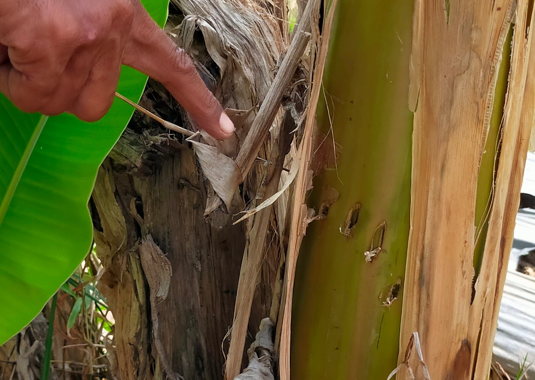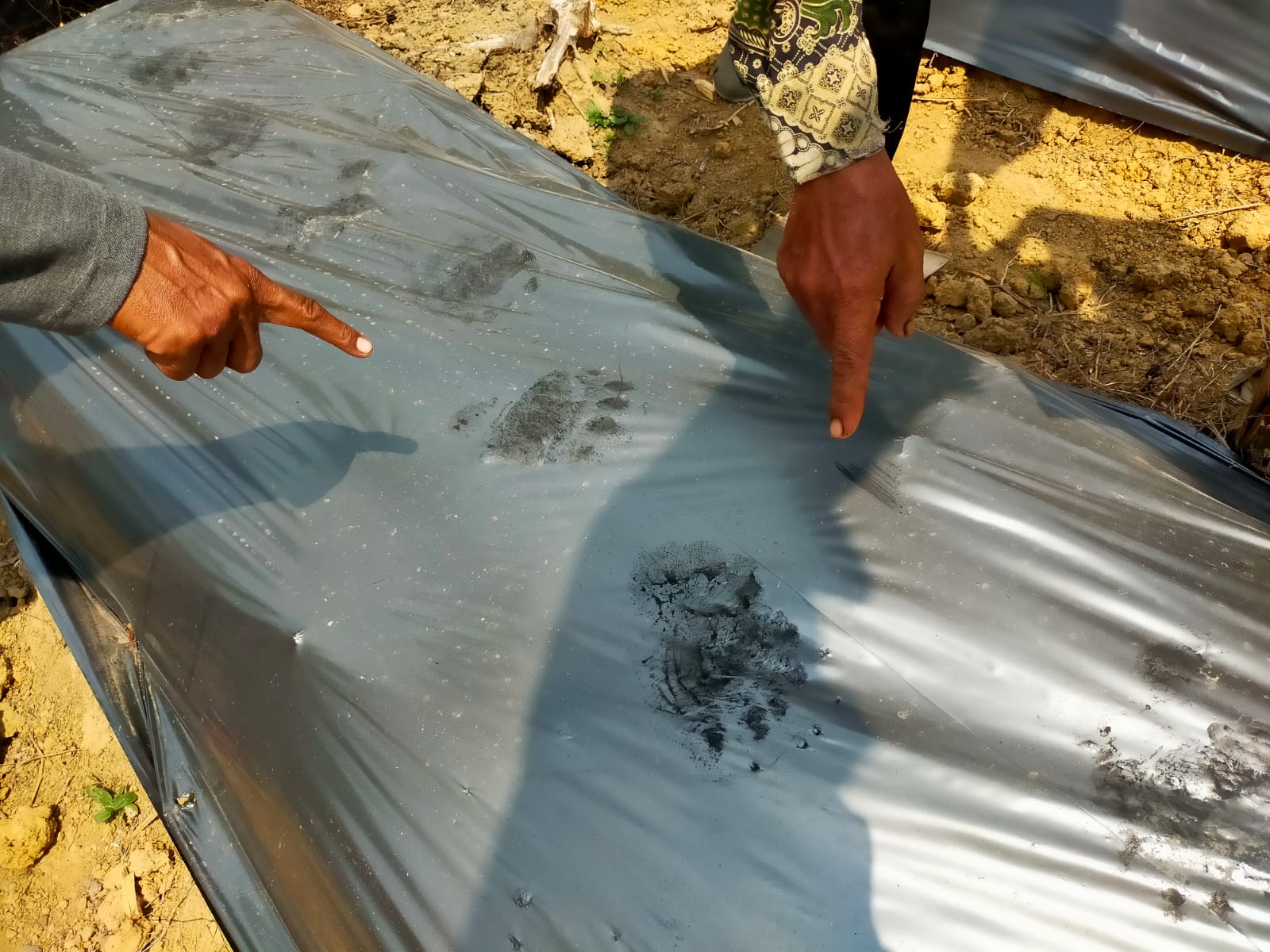 Dari bentangan plastik di kebun yang tengah digarapnya itu, hal mengejutkan tampak di sejumlah titik. Mulai dari cakaran beruang pada tanaman pisang, hingga jejak beruang di atas plastik terlihat jelas hingga menimbulkan kesan horor.