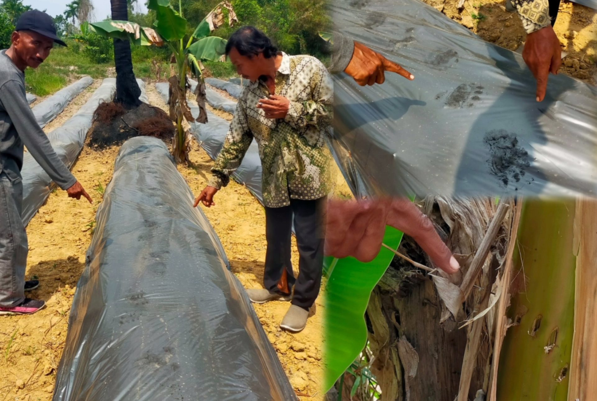 Dari bentangan plastik di kebun yang tengah digarapnya itu, hal mengejutkan tampak di sejumlah titik. Mulai dari cakaran beruang pada tanaman pisang, hingga jejak beruang di atas plastik terlihat jelas hingga menimbulkan kesan horor.