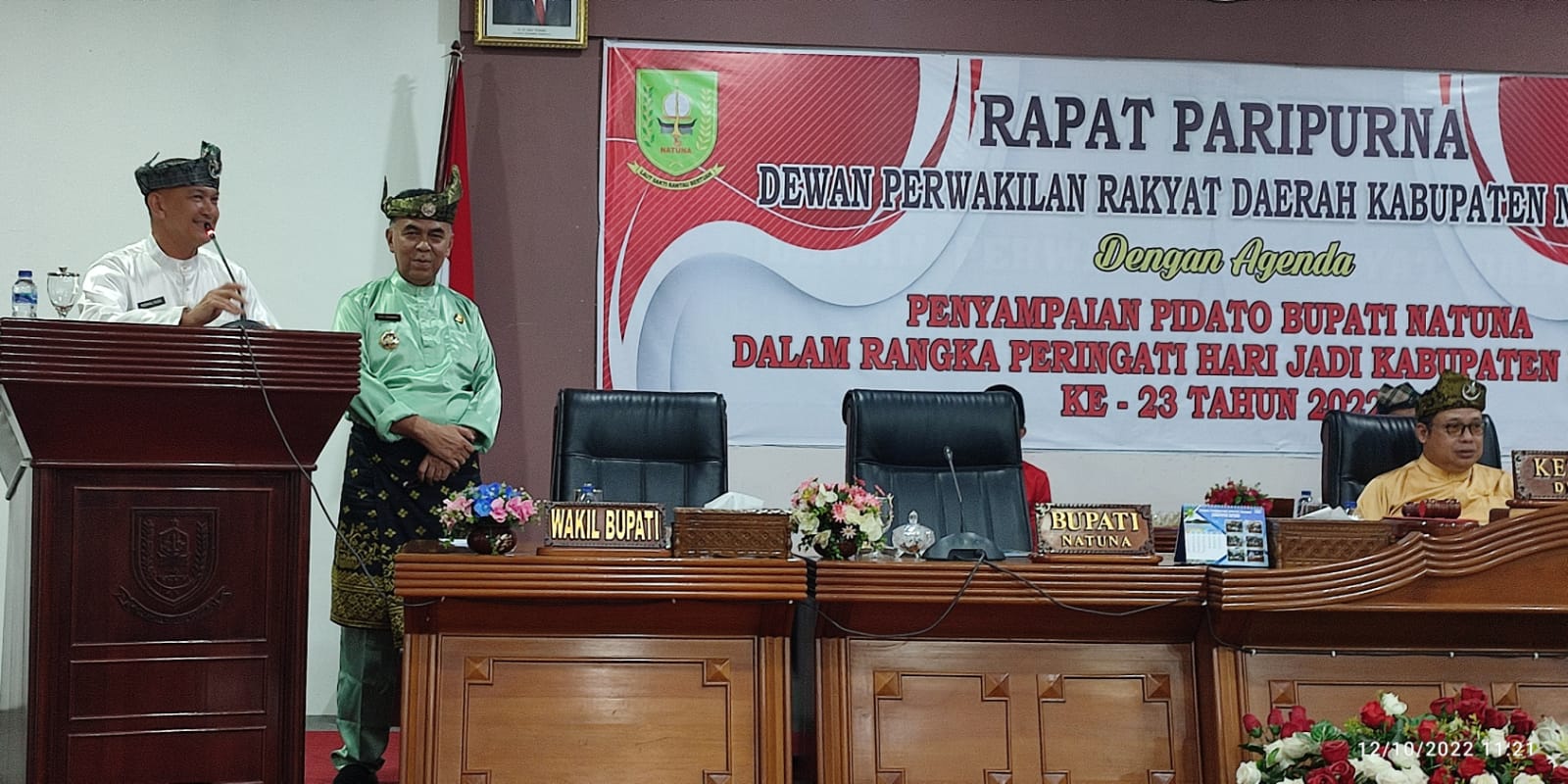Pada kesempatan itu, Bupati Natuna menyampaikan bahwa, usia Kabupaten Natuna saat ini sudah 23 tahun. Hal tersebut berdasarkan UU nomor 53 tahun 1999.
