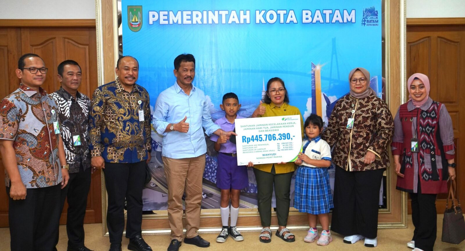 Pada kesempatan tersebut Roswita dan Wali Kota Batam Muhammad Rudi turut menyerahkan manfaat kepada salah satu ahli waris peserta yang meninggal dunia karena kecelakaan kerja.