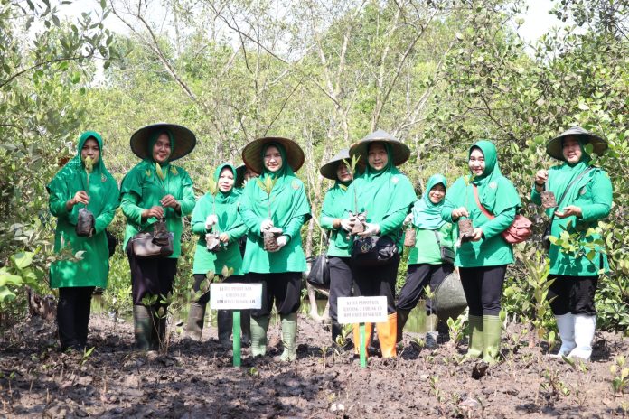 CENTRALNEWS.ID, BENGKALIS – Di tengah gentingnya ancaman Abrasi di Pulau Bengkalis, Riau, Persatuan Isteri Tentara (Persit) Kartika Chandra Kirana Cabang LII Kodim 0303 Bengkalis mengambil tindakan nyata dengan menanami bibit tanaman Mangrove di sepanjang bibir pantai kawasan Pantai Kelapapati Laut, Kecamatan Bengkalis, Bengkalis, Riau, Senin (20/4).