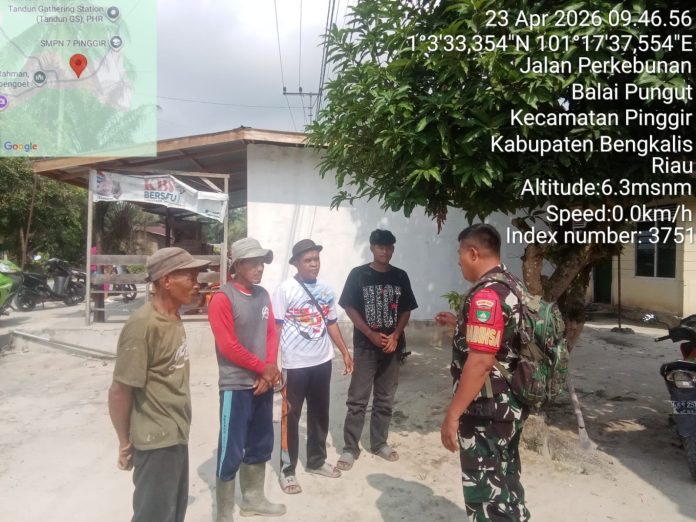 CENTRALNEWS.ID, DURI – Danramil 03 Mandau, Kapten Czi. Suratmin diwakili Babinsa Koptu Ade Kurniawan tajak komunikasi sosial bareng warga binaan di wilayah desa Balai Pungut, kecamatan Pinggir dalam rangka menyuluhkan semangat kebangsaan serta pengamalan nilai luhur Pancasila, Kamis (23/4).
