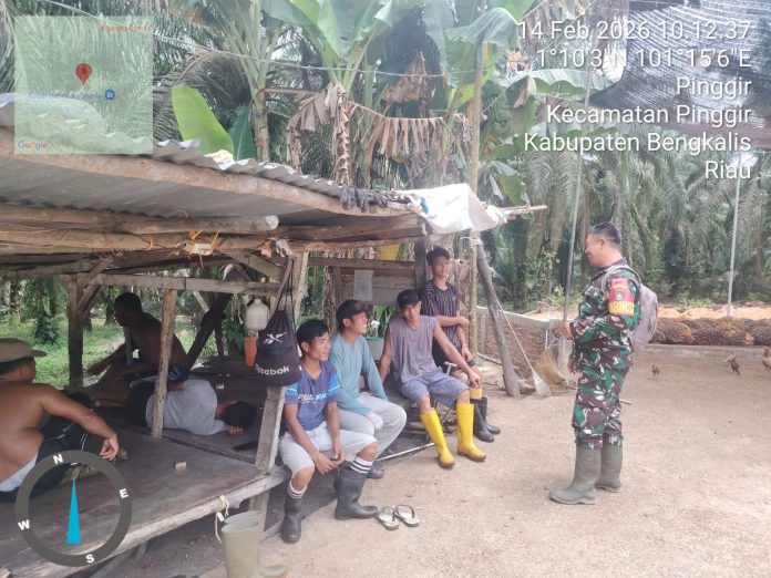 CENTRALNEWS.ID, DURI – Danramil 03 Mandau, Kapten Czi. Suratmin diwakili Babinsa Koptu Bambang tajak komunikasi sosial bareng warga binaan di desa Pinggir, kecamatan Pinggir dalam rangka menyuluhkan semangat kebangsaan serta pengamalan nilai luhur Pancasila, Sabtu (14/2).
