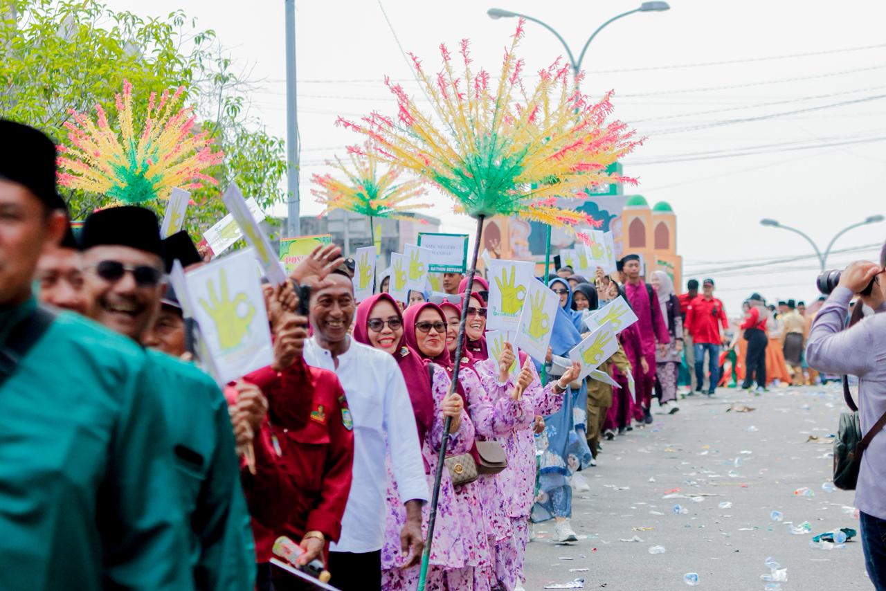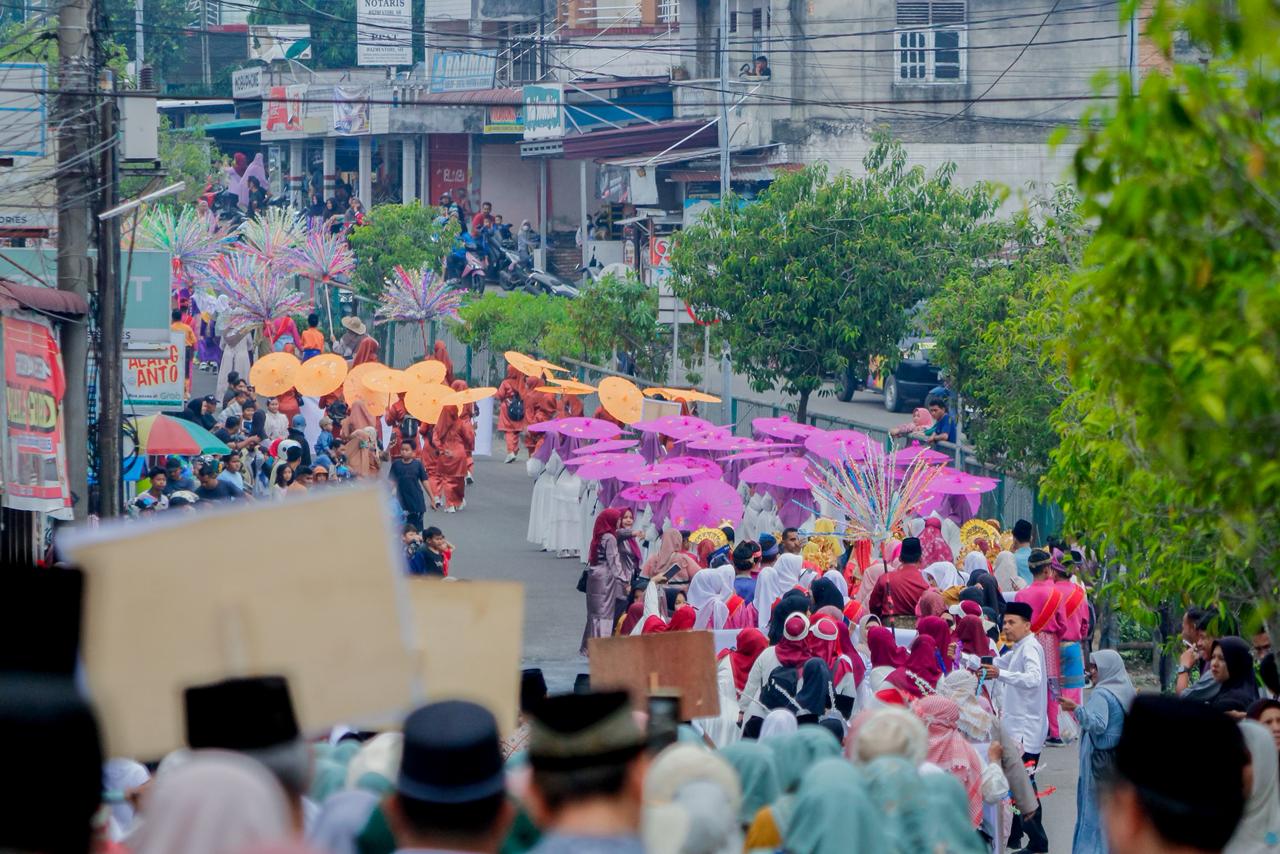 Camat Mandau Riki Rihardi bersama Forkopimcam Kecamatan Mandau kompak melepas iring-iringan pawai ribuan orang di jalan Jenderal Sudirman ini.