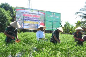 Hal inilah yang menarik hati Danrem hingga akhirnya meringankan langkah kunjungan kerjanya, di tengah kemelut tugas yang cukup menyita waktu. “Alhamdulillah, akhirnya saya berkesempatan berkunjung ke Kabupaten Kepulauan Meranti. Secara khusus, saya sangat senang karena anggota saya di wilayah Koramil 02 Tebing Tinggi jajaran Kodim 0303 Bengkalis berhasil kelola lahan tidur menjadi kebun cabai yang sangat produktif dan bermanfaat luas bagi masyarakat. Karya nyata dan kinerja prajurit kita ini layak diapresiasi dan patut dicontoh oleh masyarakat dalam rangka meningkatkan ketahanan pangan dan meredam inflasi di masyarakat secara umum,” kata Brigjen. TNI. Parlindungan Hutagalung, Danrem 031 Wira Bima.