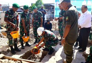 “Dengan mengucap syukur kehadirat Allah SWT, Tuhan Semesta Alam, kita mulai pembangunan Aula Koramil 02 Tebing Tinggi ini yang kita tandai dengan peletakan batu pertama pada hari ini. Pembangunan gedung ini tak lepas dari dukungan pemerintah daerah Kabupaten Kepulauan Meranti, oleh karena itu atas nama pribadi dan institusi, saya ucapkan terima kasih yang sangat mendalam,” hatur Danrem sembari meletak batu pertama.