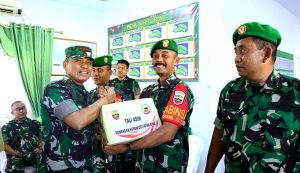 Setelahnya, Danrem dan jajaran serahkan tali asih kepada anak Yatim, pemberian apresiasi dan bingkisan kepada prajurit atau Babinsa berprestasi serta memberi pengarahan kepada seluruh jajaran sempena lawatan kerja ke Kepulauan Meranti. “Jangan lelah berbuat kebaikan, jangan lelah mengayomi masyarakat. Ingat, kita berasal dari masyarakat, maka ayomilah masyarakat dan jadilah solusi atas kesulitan yang dialami masyarakat. Jadilah prajurit tangguh yang tak kenal lelah,” seru Danrem beriring semangat kelada seluruh anggota yang hadir.