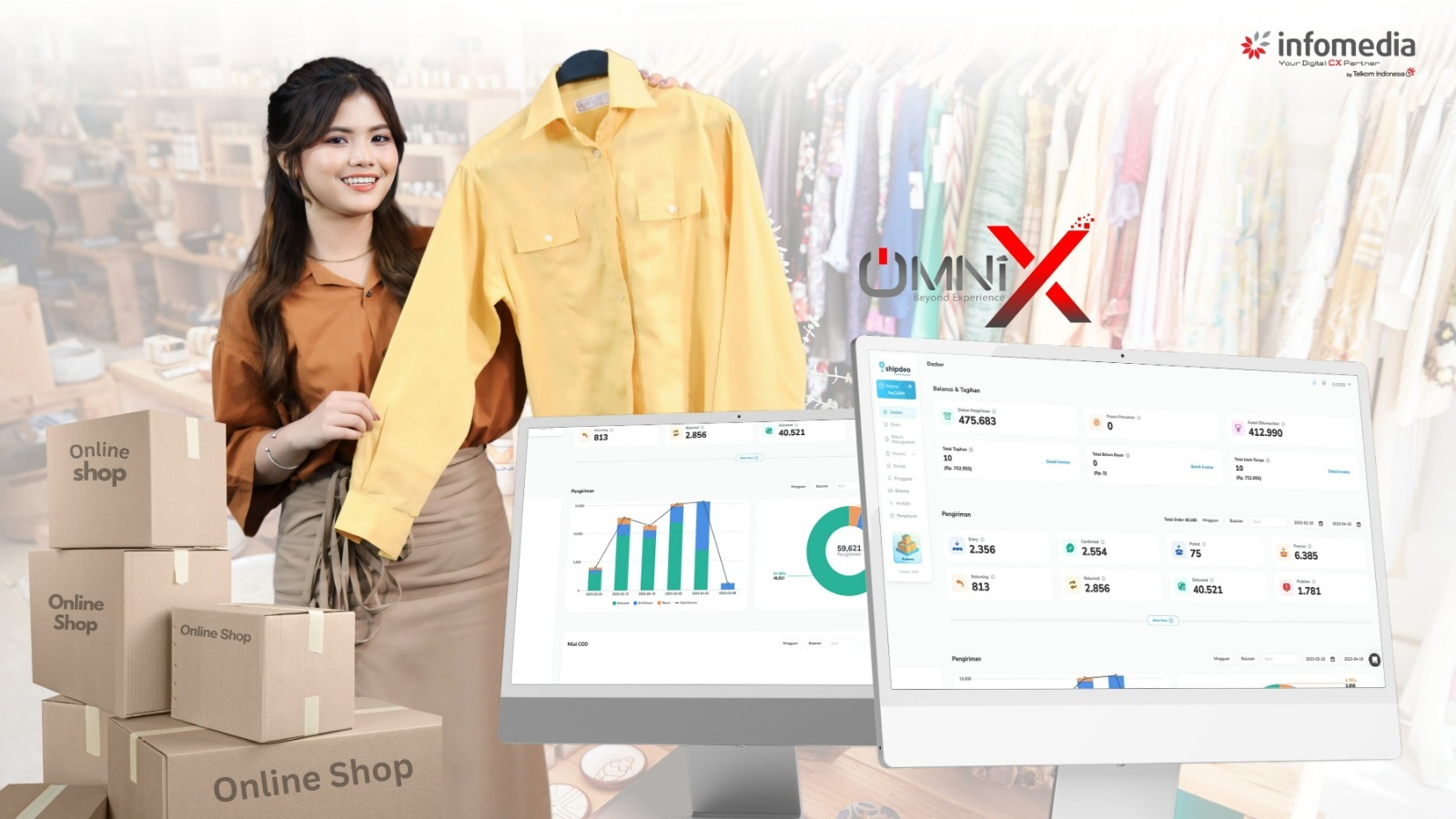 Lewat OmniX Commerce, pelaku UKM dapat menghemat waktu dan tenaga dalam mengelola berbagai platform marketplace yang merupakan tools penjualan secara digital, mengecek ketersediaan barang semakin akurat dengan kemampuan OmniX Commerce melakukan sinkronisasi stok secara otomatis, hingga memberikan experience dalam melakukan penjualan semakin efektif dan efisien melalui pelaporan penjualan secara realtime.